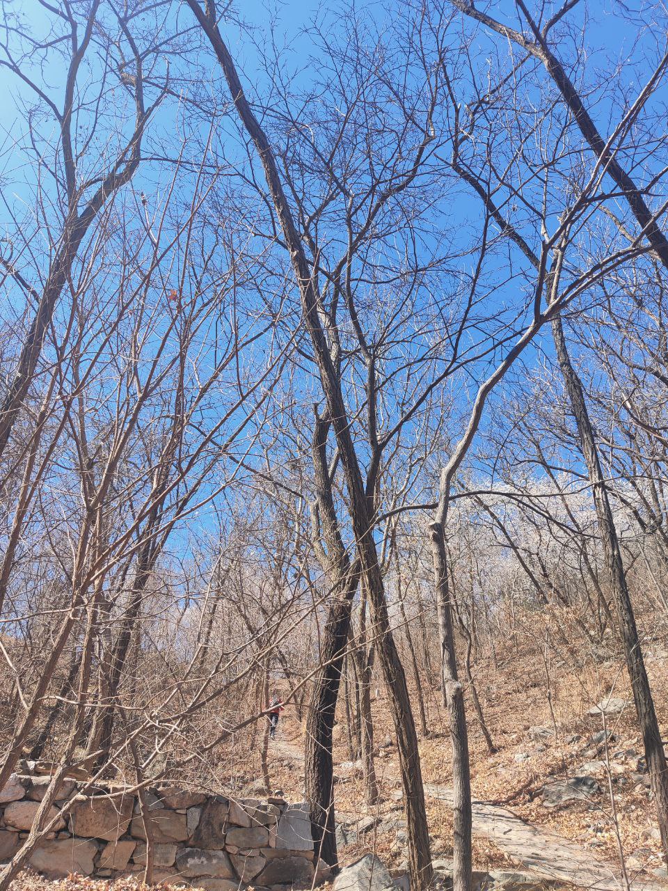 下第一个山头后,在山沟中有一个小水库。坐水边稍许休息后又从另一边上另一个山头,是香山的方向。对于野外徒步,我是新手。出发的时候,没有带干粮,也没有带足够的水。好在快到香山顶的地方,有个售卖水的地方,老板说要喝电解质水,因为除了很多汗,它可以调节体内酸碱平衡。
